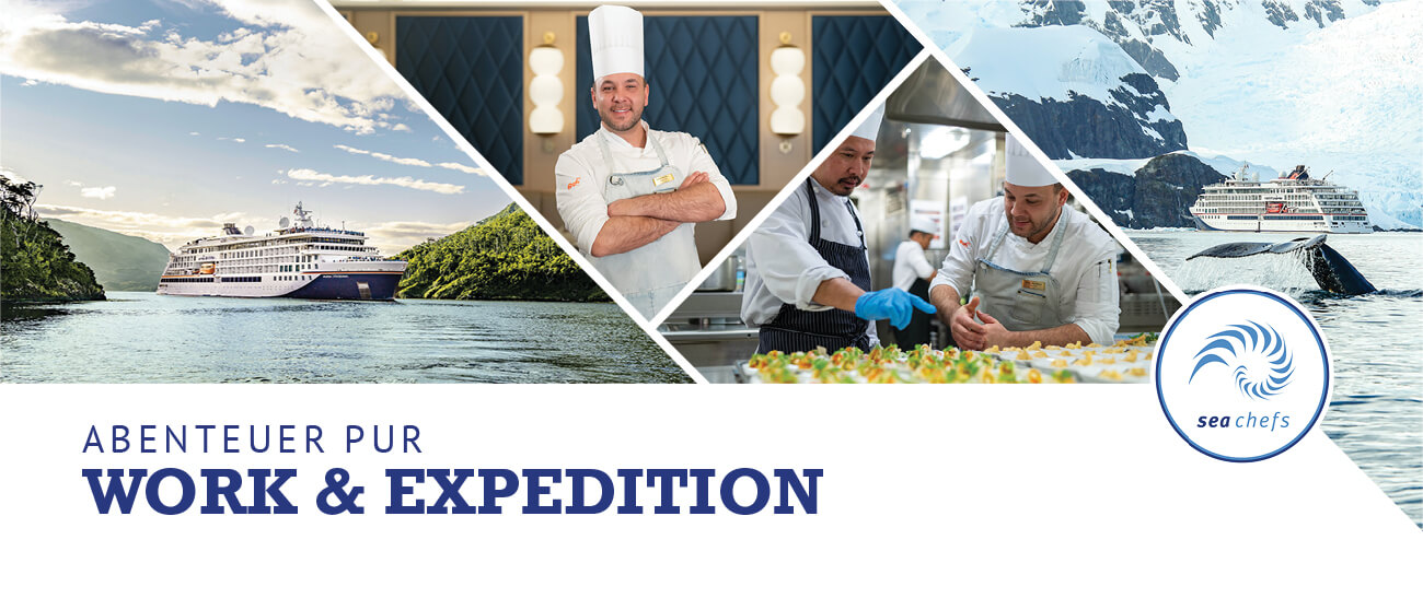 Gehöre zu den Besten - werde vom Beobachter zum Entdecker: Mit deinem Job bei sea chefs erlebst du echte Abenteuer an Bord der jüngsten und modernsten Expeditions-Flotte der Welt: HANSEATIC nature, HANSEATIC inspiration und HANSEATIC spirit. Kategorisiert mit der höchsten Eisklasse erreicht die Expeditionsflotte von Hapag-Lloyd Cruises die schönsten und entlegensten Orte der Erde.