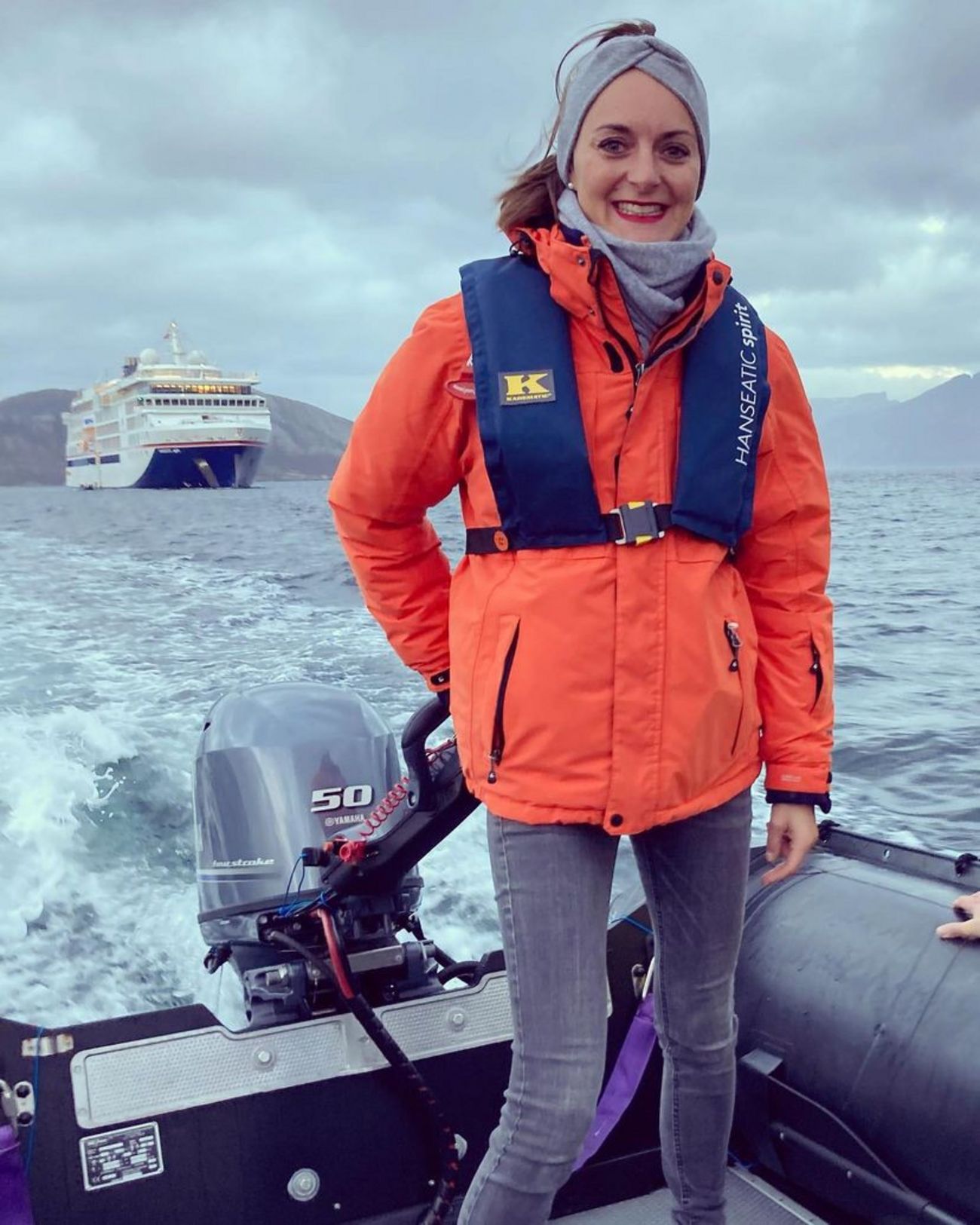 Denise beschreibt ihren Job an Bord so: "Besonders gefällt mir, dass mein Job sehr abwechslungsreich ist und ich aktuell die Option habe auf dem Expeditionsschiff HANSEATIC spirit sogar Zodiac zu fahren!" Sie hat die Chance genutzt, den Zodiac-Führerschein direkt an Bord zu machen. Eine ganz besondere Möglichkeit, die wir unseren Crew-Mitgliedern an Bord einiger Schiffe anbieten können. Denise liebt es, die Zeit gemeinsam mit den Gästen auf dem "Gummiboot" zu verbringen.