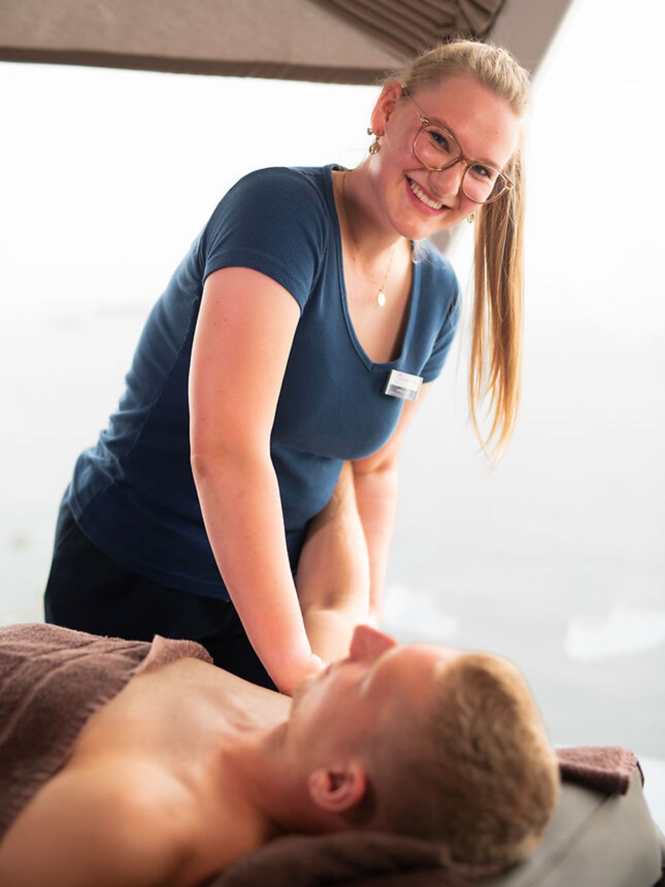 A: Ja, ich würde es definitiv empfehlen, allerdings sollte man sich bewusst sein, dass die Arbeit hier anders ist als an Land. Wir massieren viel und ein sehr großer Fokus liegt auf der manuellen Therapie, was nicht jedem Physiotherapeuten liegt. Jeder, der sich dessen bewusst ist und auf den Job an Bord einlässt, kann eine wirklich schöne Zeit haben und viel Freude an der Arbeit finden. Es hängt aber auch ganz davon ab, welche Kenntnisse man bereits mit an Bord bringt. Generell gilt: Je mehr Erfahrung man mitbringt, desto vielfältiger und abwechslungsreicher ist das Tätigkeitsfeld an Bord.