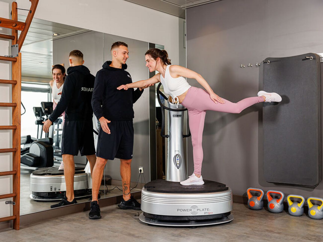 A: Ein reiner Physiotherapeut arbeitet zu 100 % im SPA und macht alles das, was ich an einem typischen Seetag mache. Da ich sowohl im SPA- als auch im Sportbereich tätig bin, kann ich Patienten gezielt Übungen zeigen und Personal Trainings anbieten, was für reine Physiotherapeuten nicht möglich ist. Wenn ich zum Beispiel während einer Physiotherapie-Behandlung feststelle, dass manuelle Therapie nicht ausreicht und ich lieber ein paar Übungen zeigen möchte, kann ich das problemlos organisieren. Ich schlage dann einfach vor, beim nächsten Mal in den Sportbereich zu wechseln. Dort kann ich ein Personal Training durchführen.